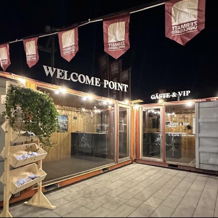Temporärer Bau für ein Festival aus zwei ausgebauten Schiffscontainern.